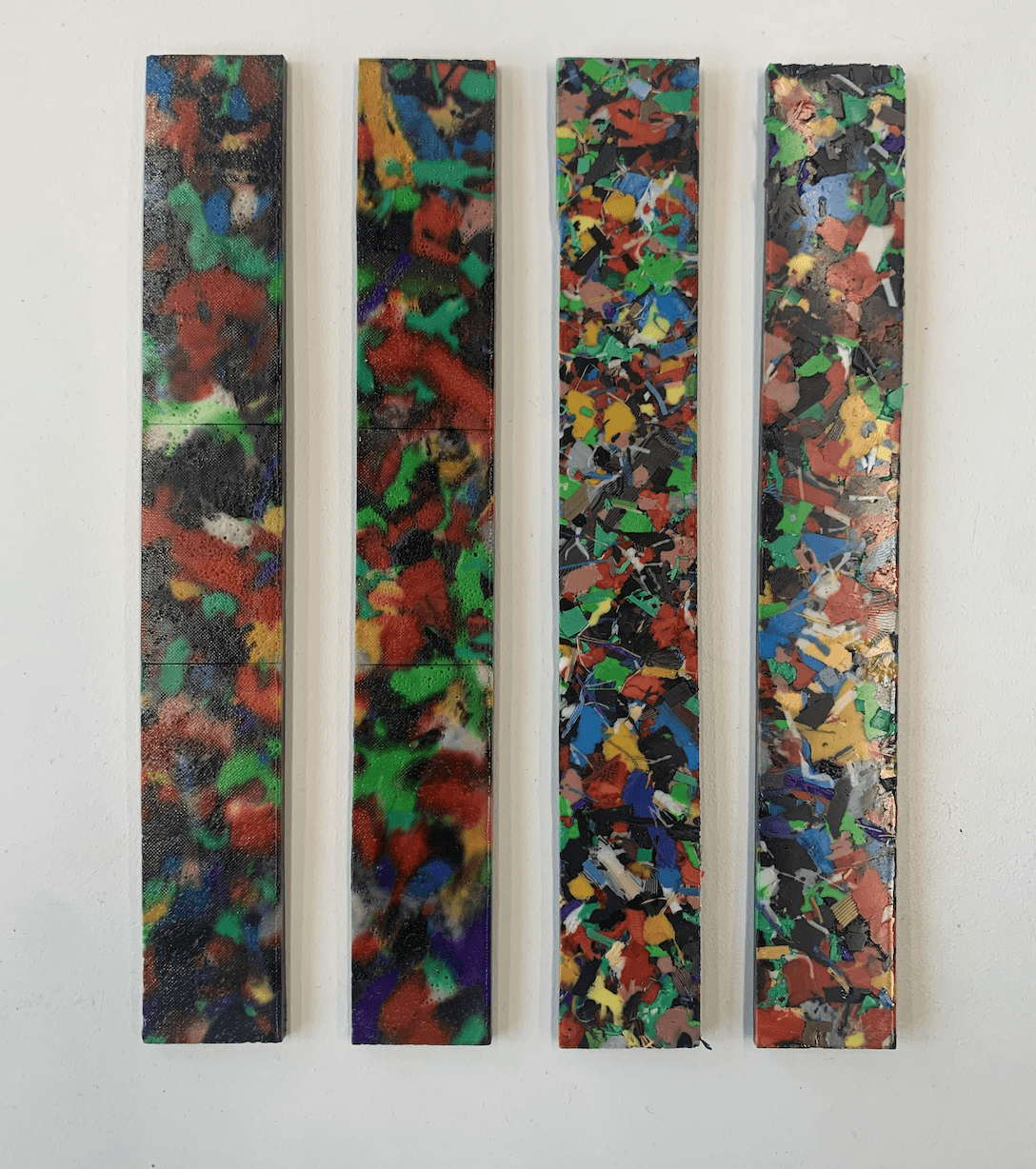 I created a consistent workflow to produce plastic sheets by pressing the PLA shreds with a t-shirt press. Taking a DOE methodology, I explored temperatures, timing, and material properties to perfect a glossy finish with a uniform thickness. These sheets can directly be lasercut for a variety of applications, for example, I lasercut them into landing gear for a VTOL drone. Check out more info on the project website here.